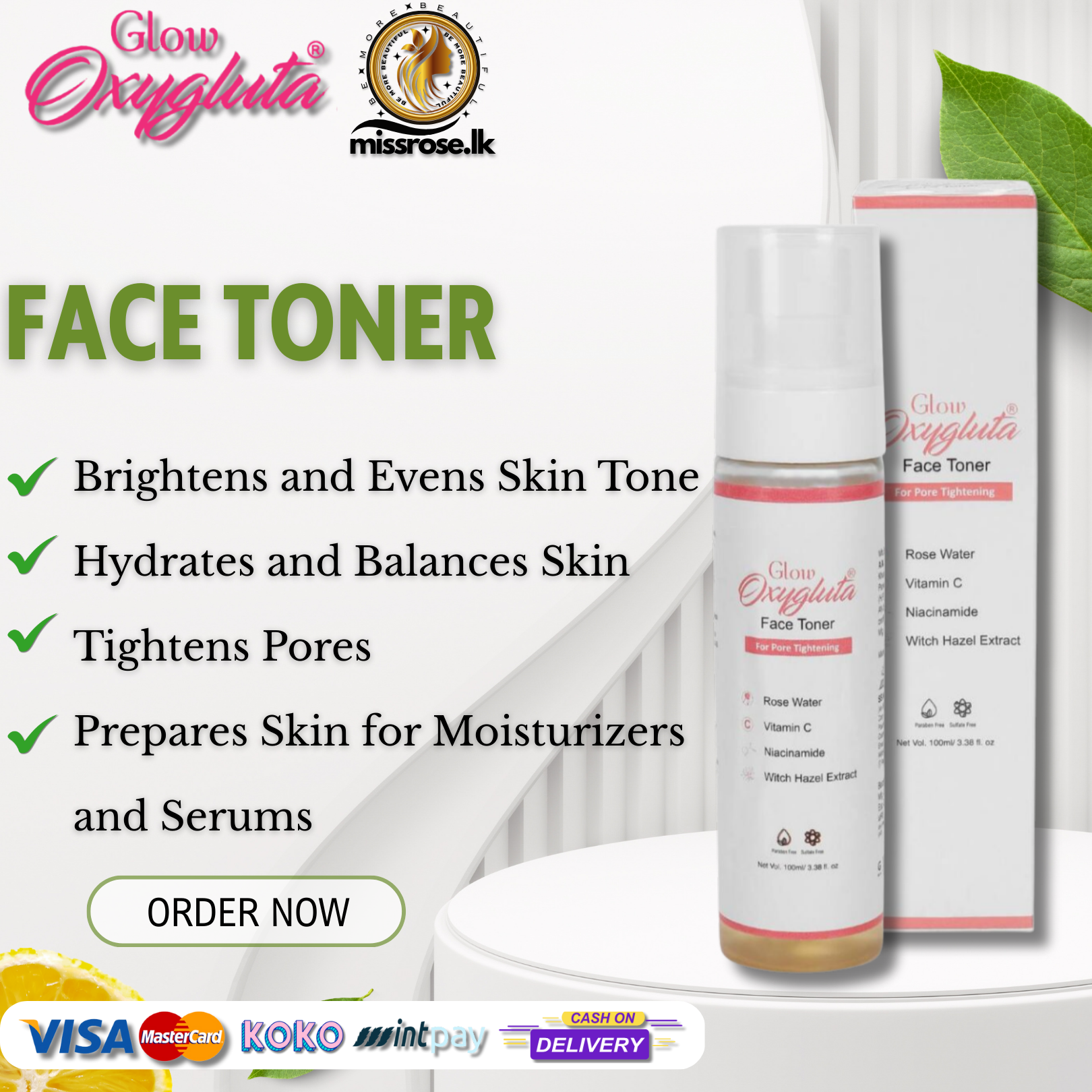 Glow Oxygluta Face Toner is typically a skin-refreshing toner enriched with brightening and antioxidant ingredients such as Glutathione (for skin brightening and even tone), Oxygen boosters (to revitalize tired skin), and sometimes natural plant extracts (to soothe and hydrate).