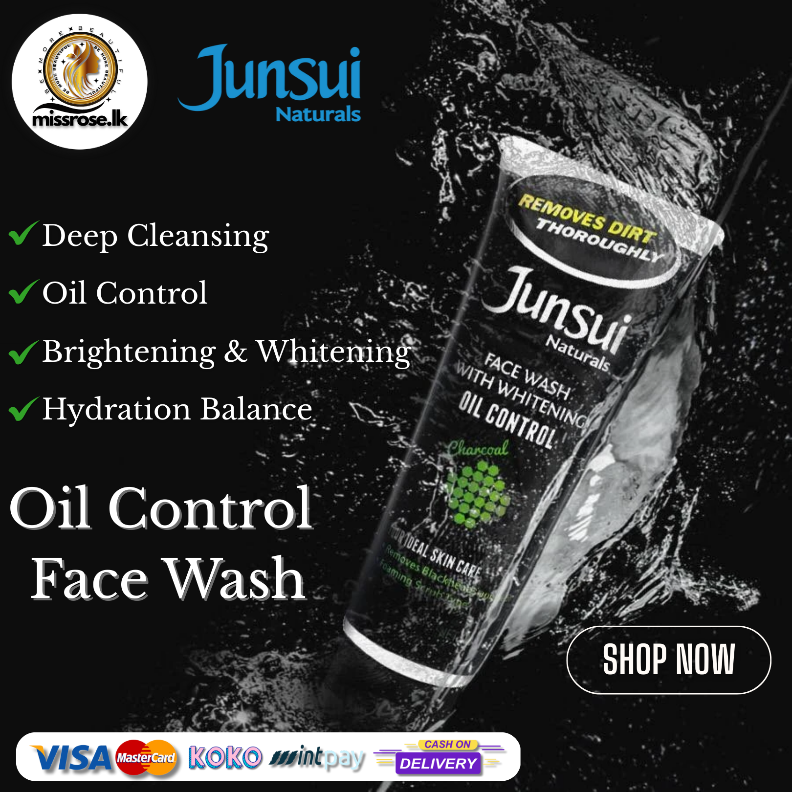 Bring out your natural glow with the power of Junsui Naturals Face Wash. Specially formulated with whitening ingredients and oil control technology, this refreshing face wash helps: