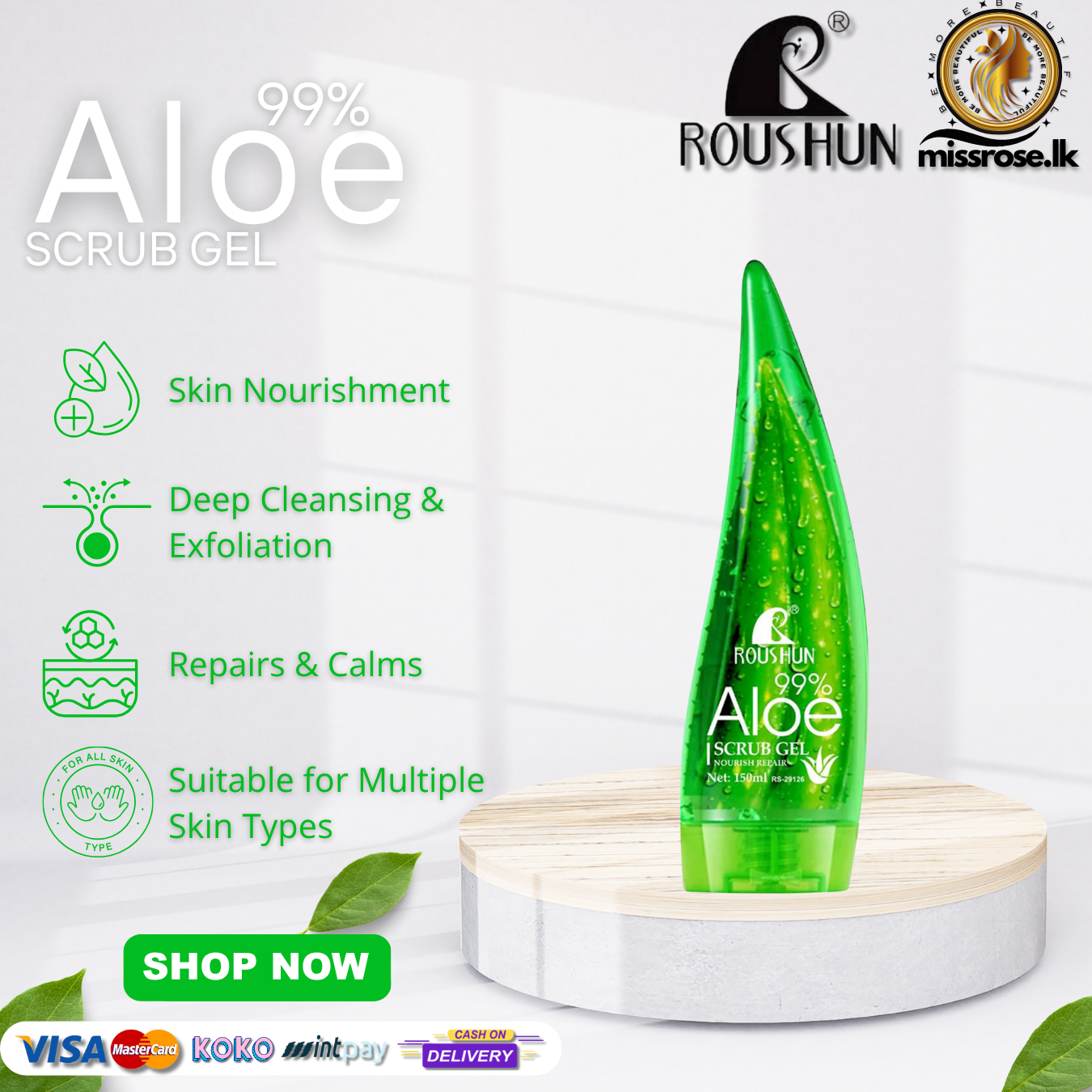 Roushun 99% Aloe Vera SCRUB Gel Nourish Repair 150 ML