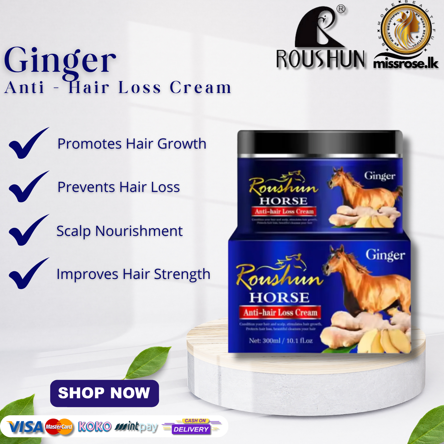 Roushun Horse Anti-Hair Loss Treatment with Ginger is a specialized hair treatment designed to address hair loss and promote hair growth. It combines the traditional benefits of ginger with the reputed properties of horse oil, a well-known ingredient in some hair care products that is believed to help nourish the scalp and hair follicles.