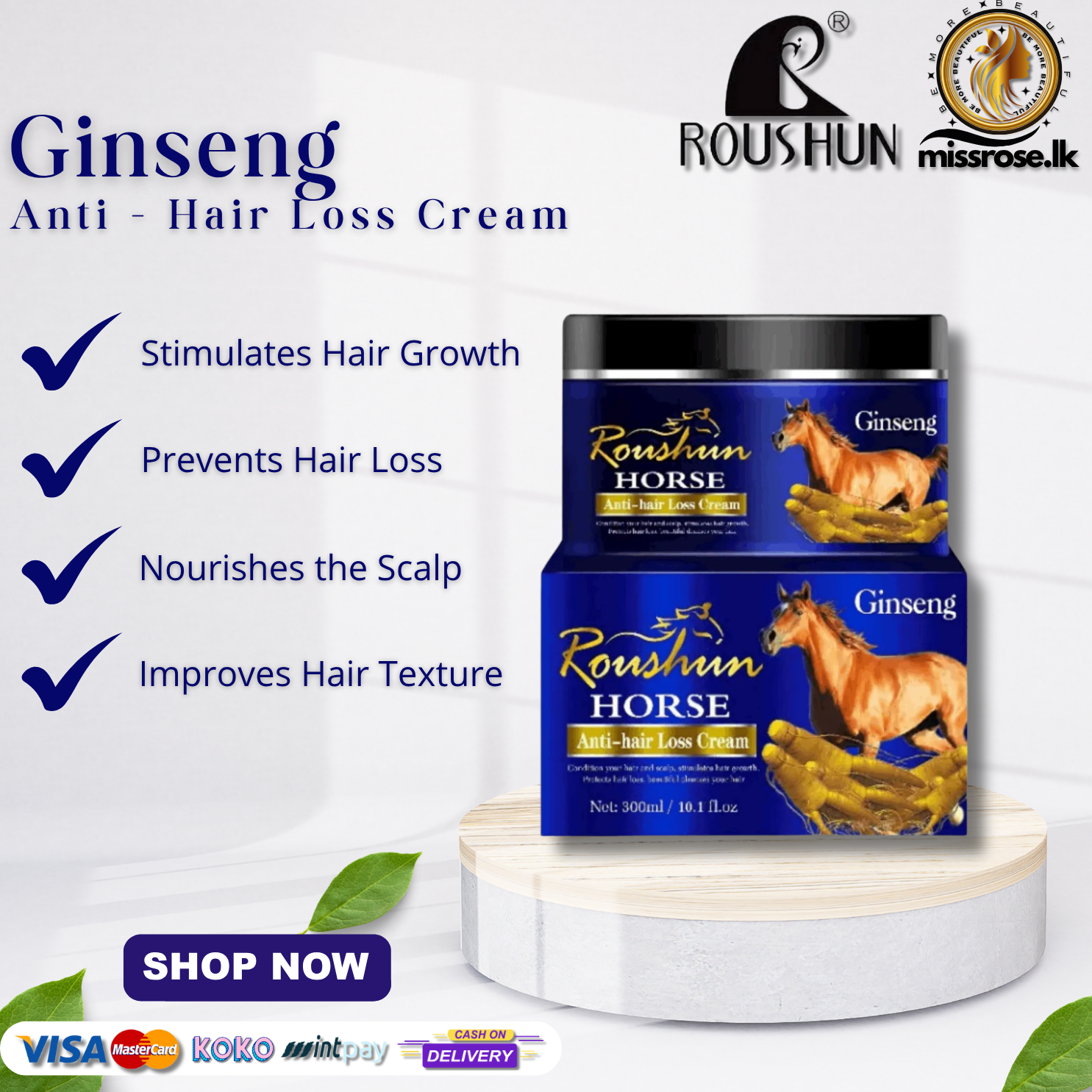 Roushun Horse Anti-Hair Loss Treatment with Ginseng is a hair care product designed to help with hair loss prevention and promote healthier hair growth. The treatment combines the benefits of horse oil with ginseng, a popular herbal ingredient known for its potential to stimulate circulation and improve scalp health.